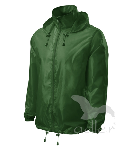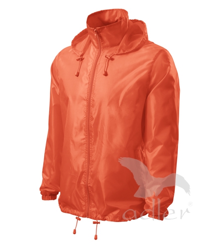 Celozapínacia ľahká bunda, vetru odolná. Skrytá kapucňa v golieri. Dve predné vrecká. Sťahovacie šnúrky na spodnom okraji a na kapucni. Výrobok je dodávaný s vrecúškom na zips a pútkom z rovnakého materiálu.
