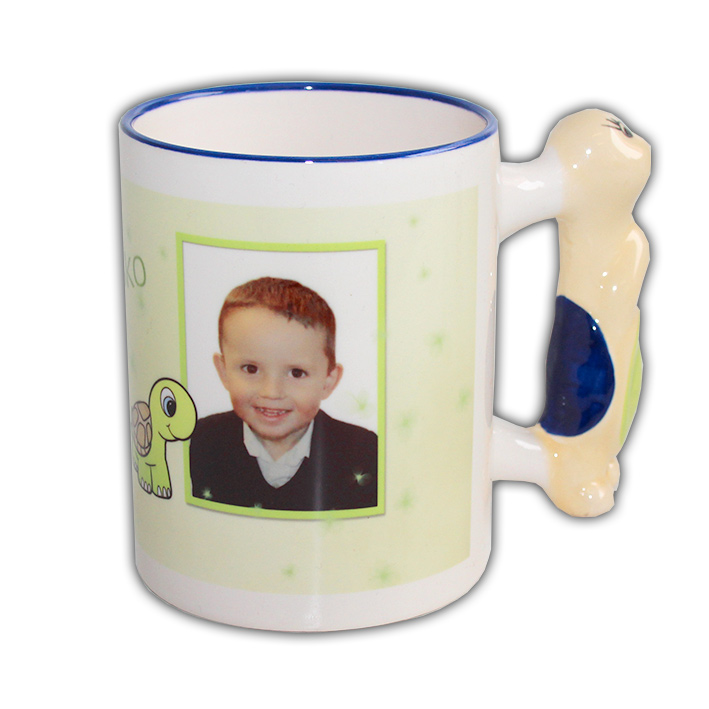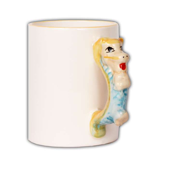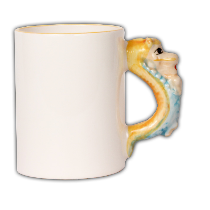Kvalitný biely hrnček klasického tvaru s uškom v tvare draka. Bez potlače.