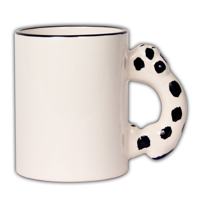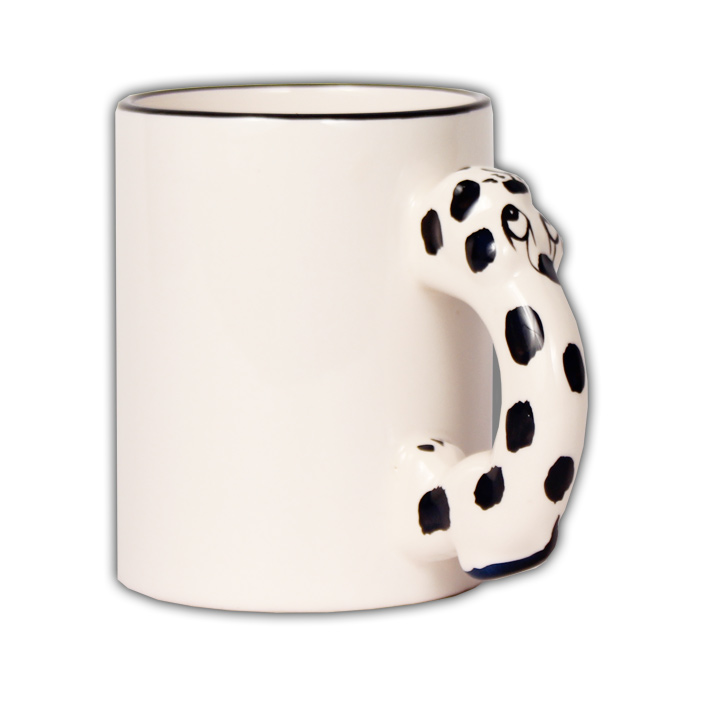 Kvalitný biely hrnček klasického tvaru s uškom v tvare psíka. Bez potlače.
