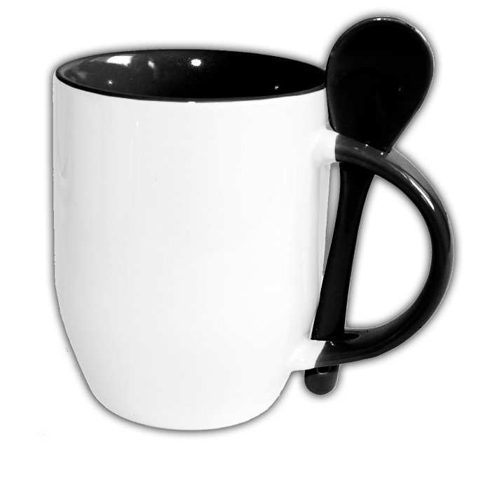 Kvalitný hrnček klasického tvaru s farebným uškom a vnútrom. Súčasťou hrnčeka je aj lyžička, ktorú je možné nasadiť na uško. Bez potlače.