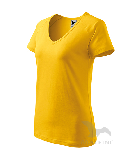 Kvalitné dámske tričko vyššej gramáže. Golier v tvare V. Strih zvýrazňujúci dámsku siluetu. Drží tvar vďaka prídavku elastanu.